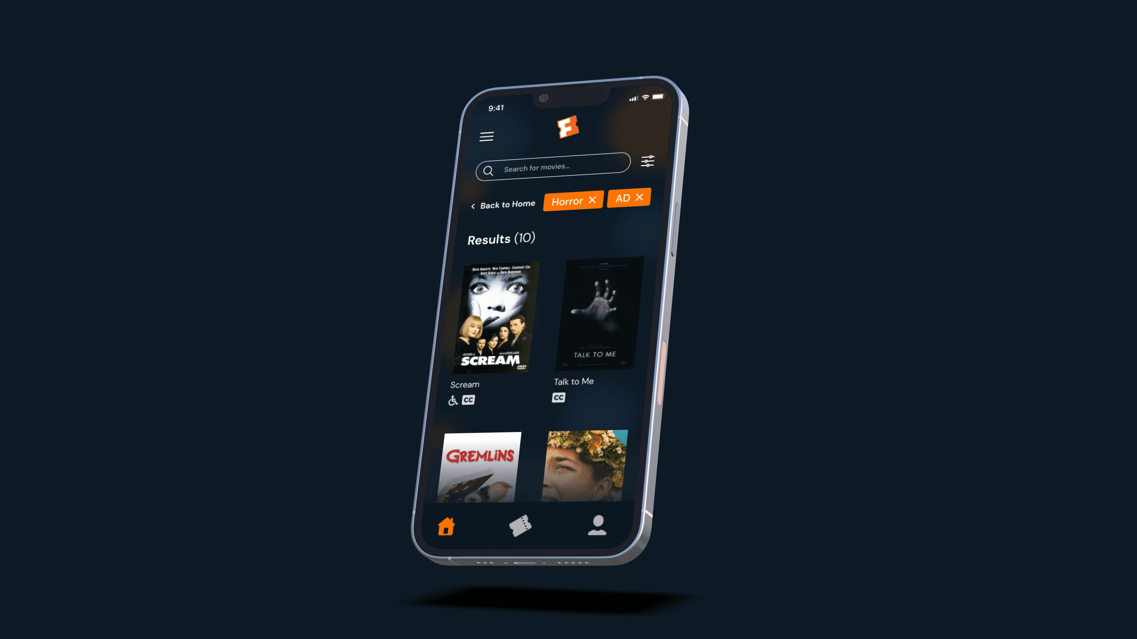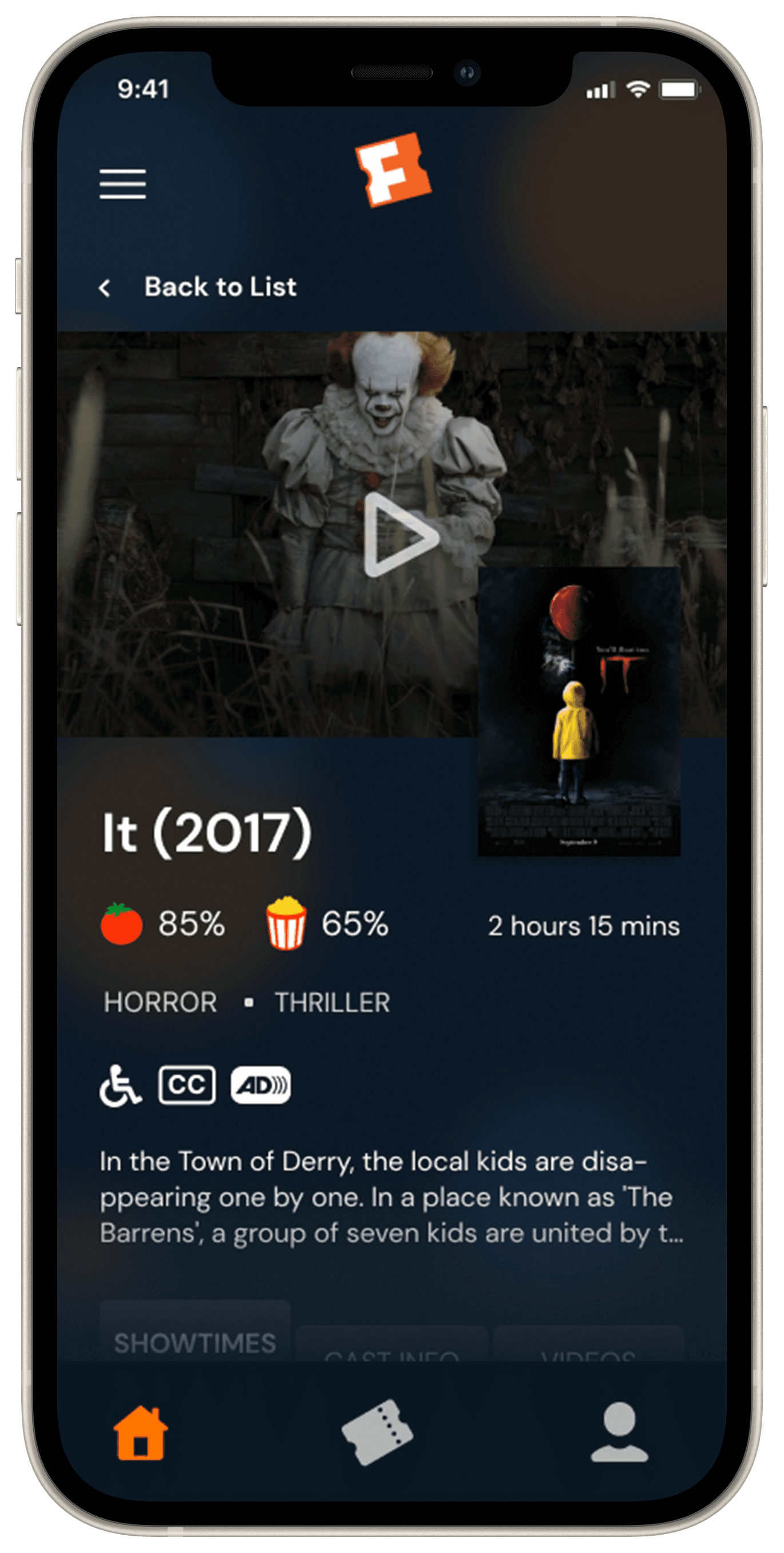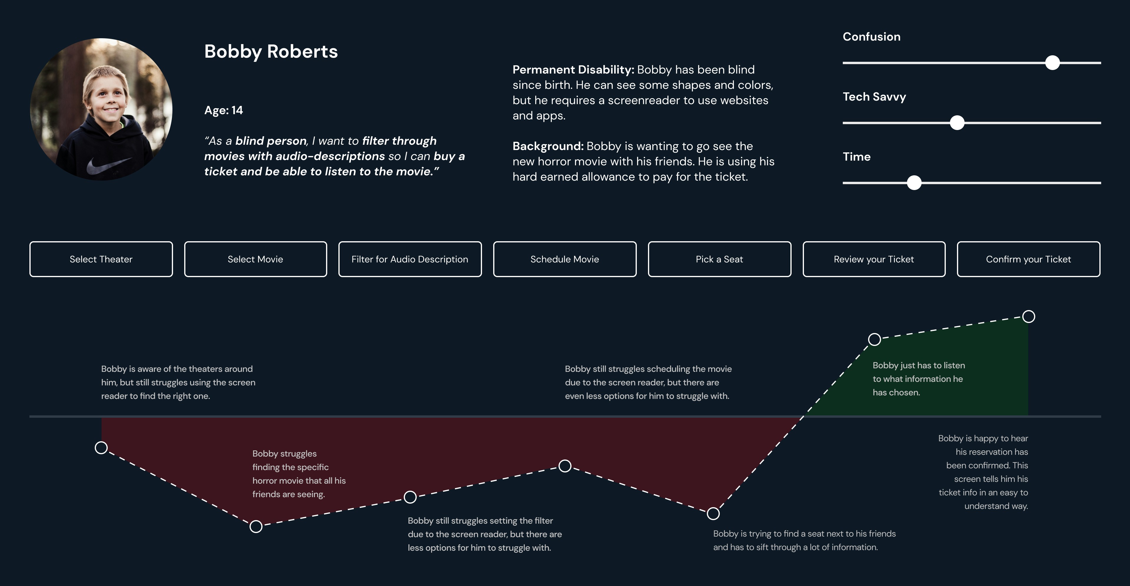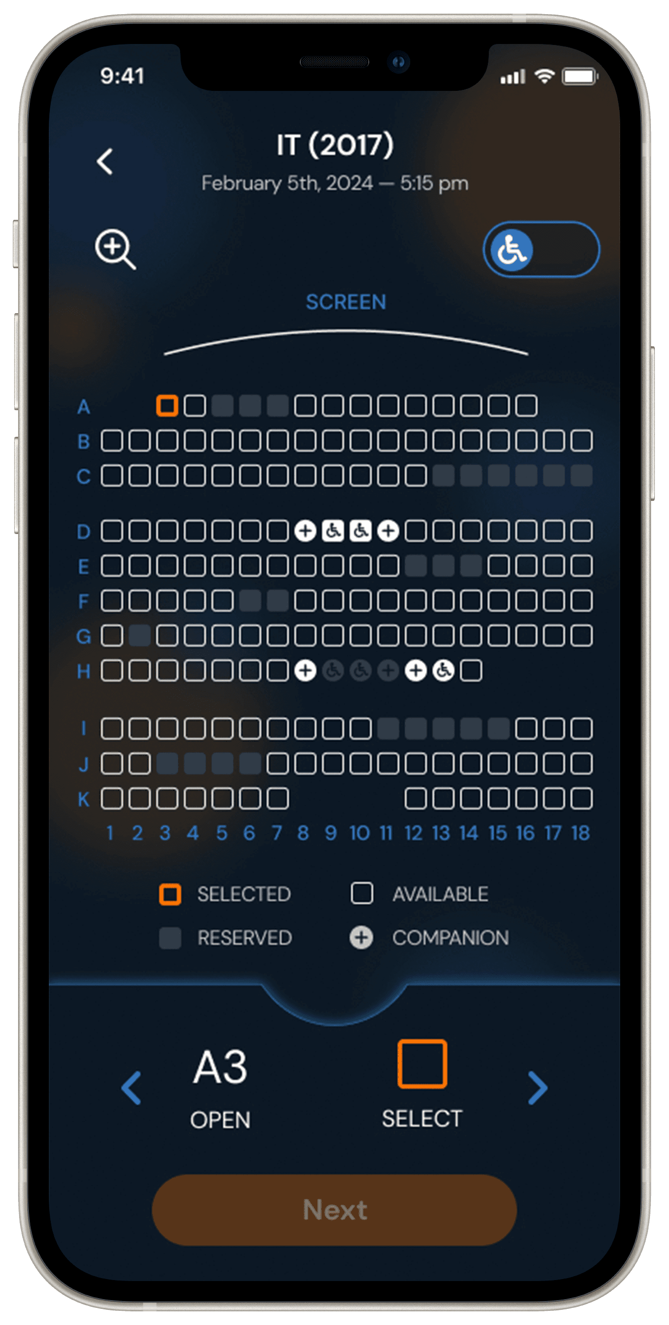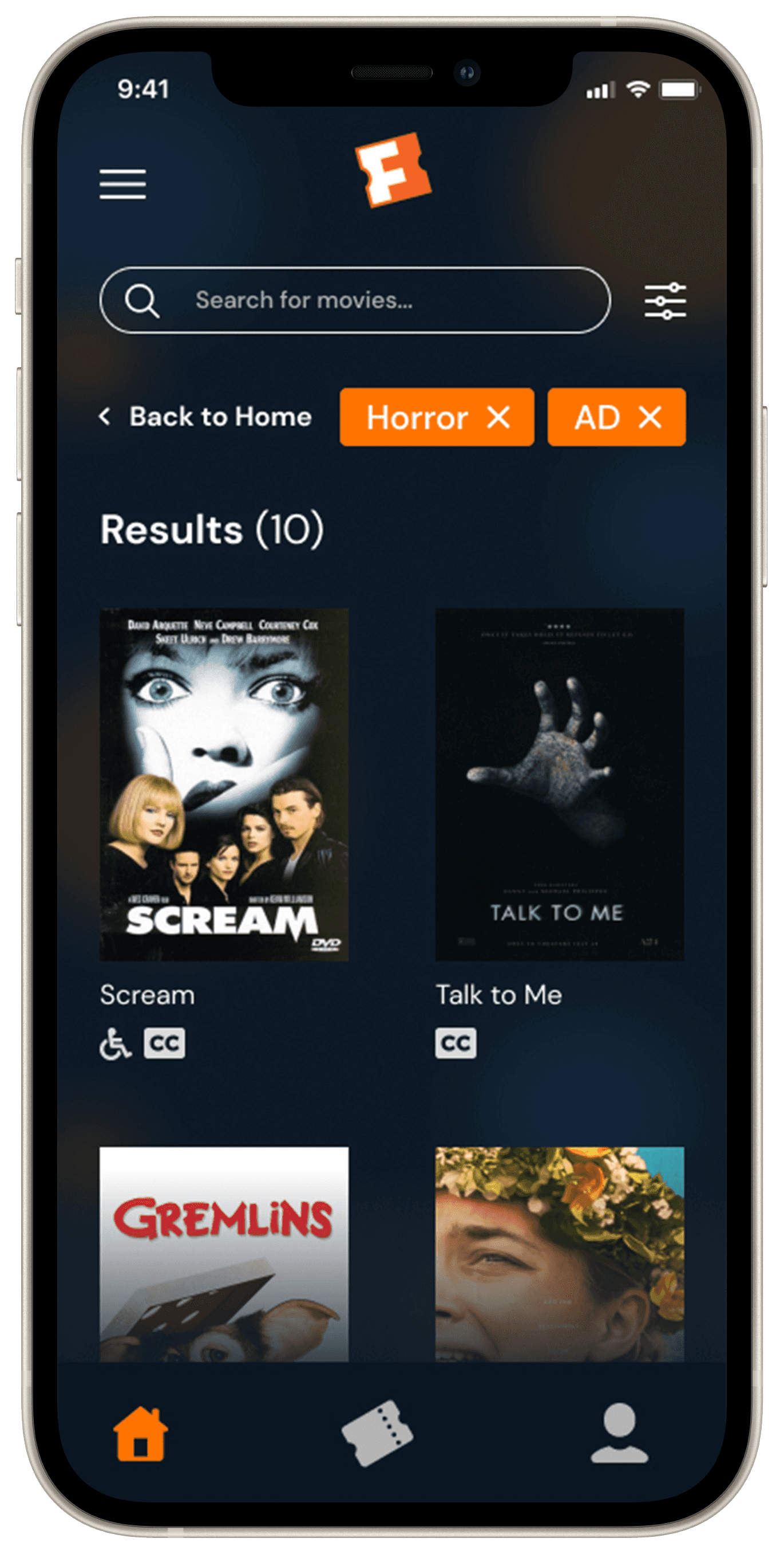 How a user with visual impairment filters for AD-supported theaters. Sound on for the full experience.