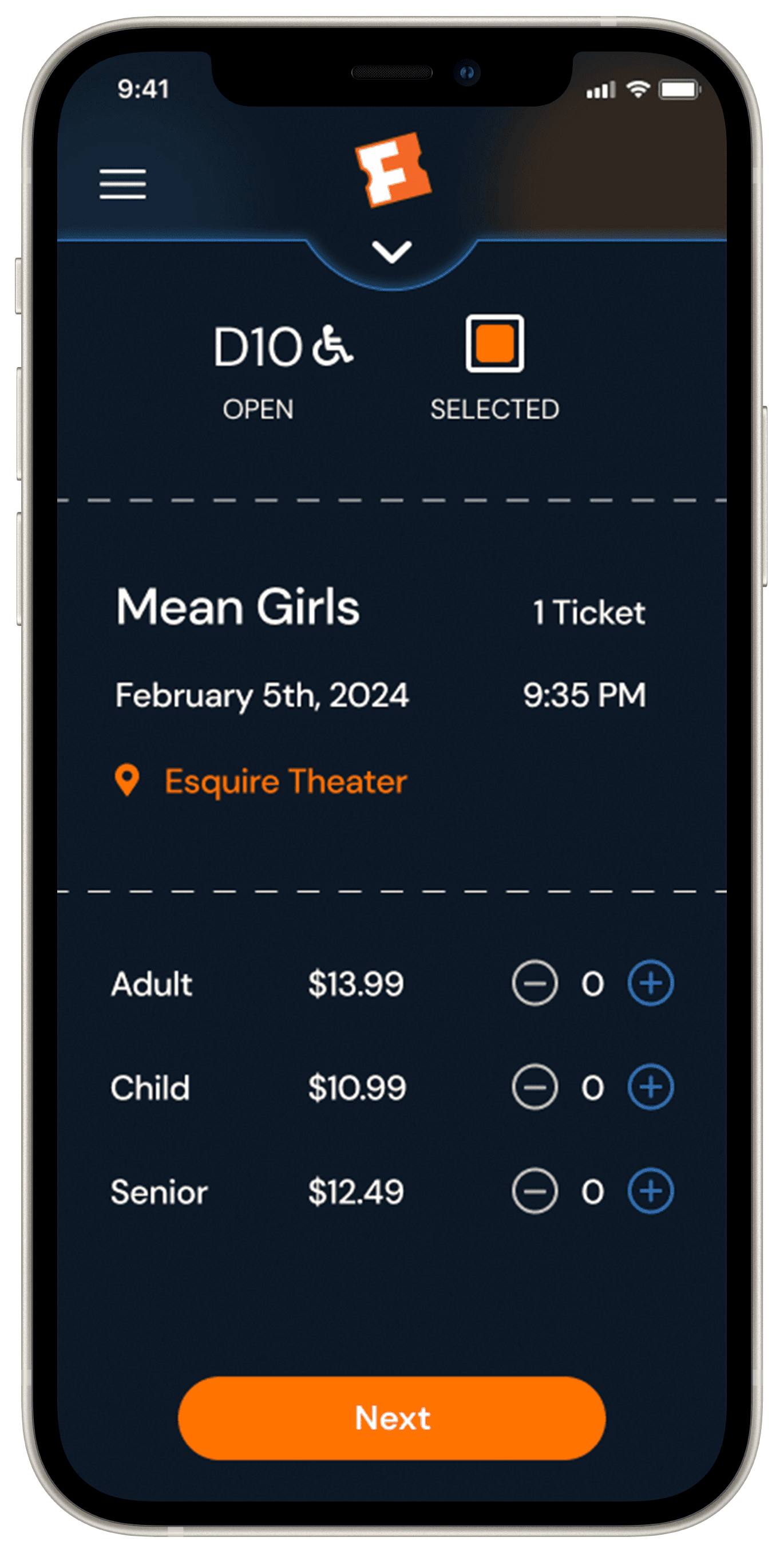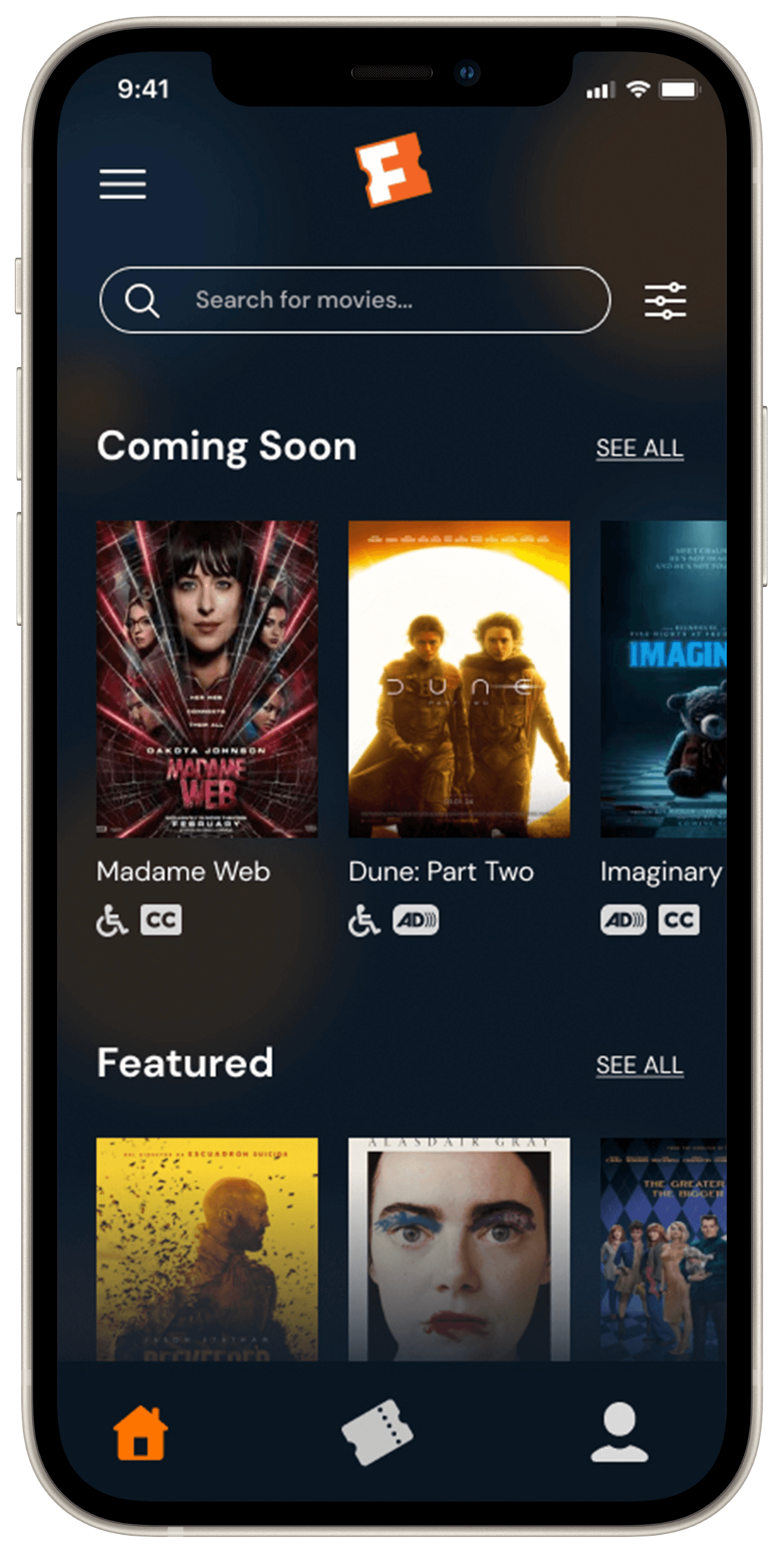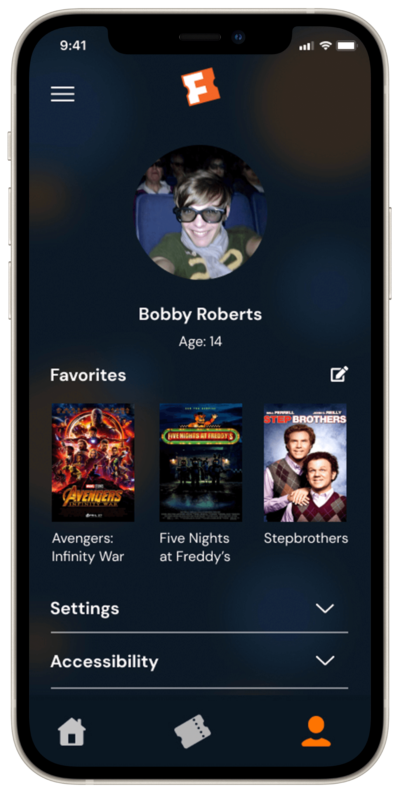 How a user who need wheelchair accessible theaters navigates the new Fandango app.