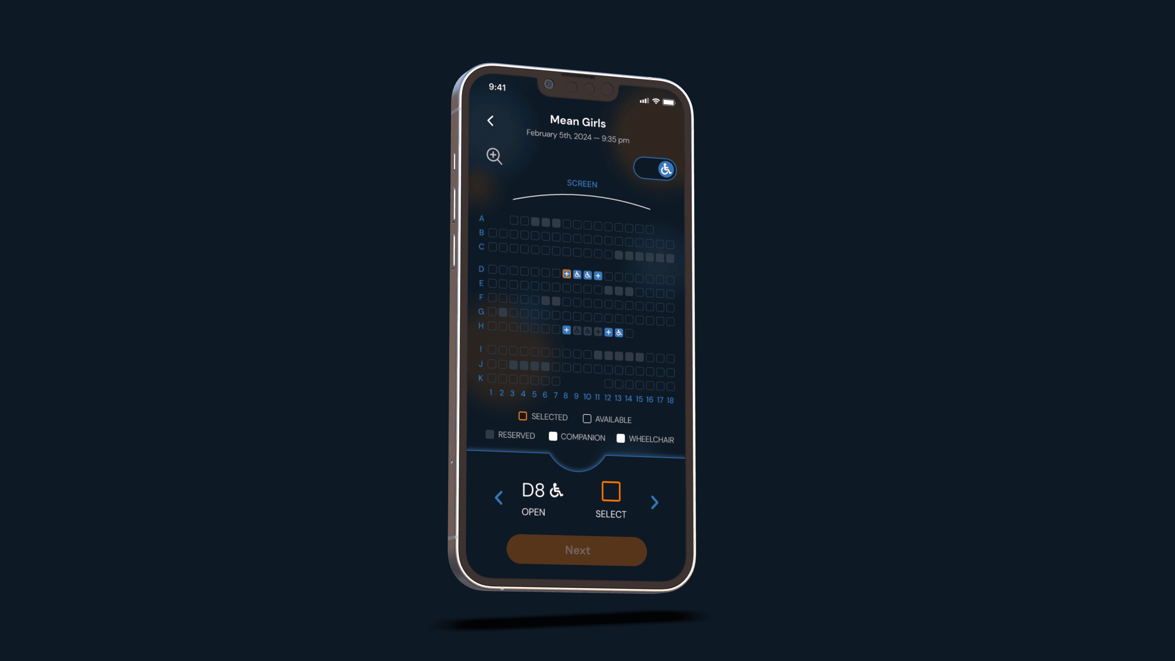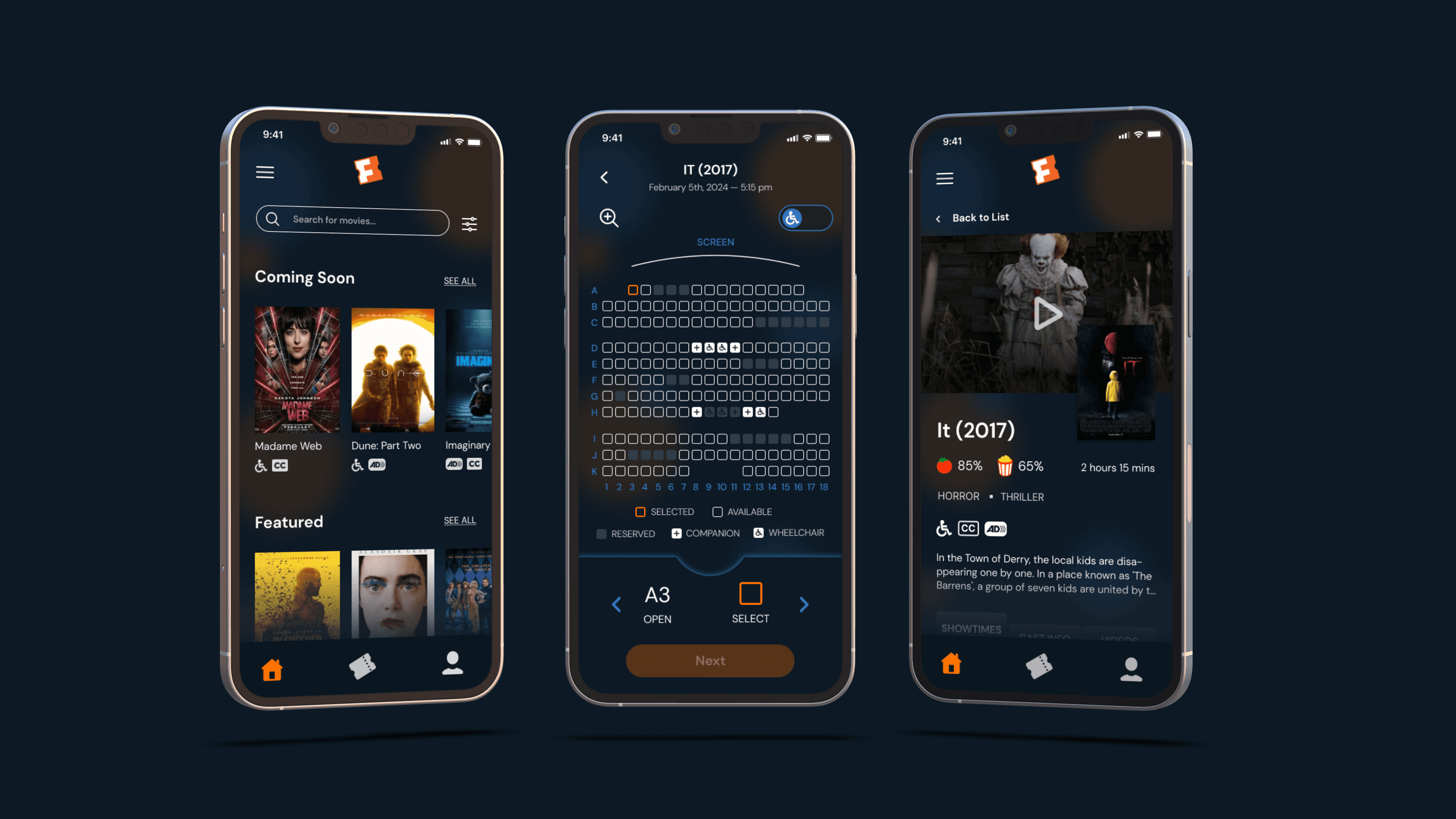 Fandango, the movie theater app, redesigned to be more accessible for the visually and physically impaired.
