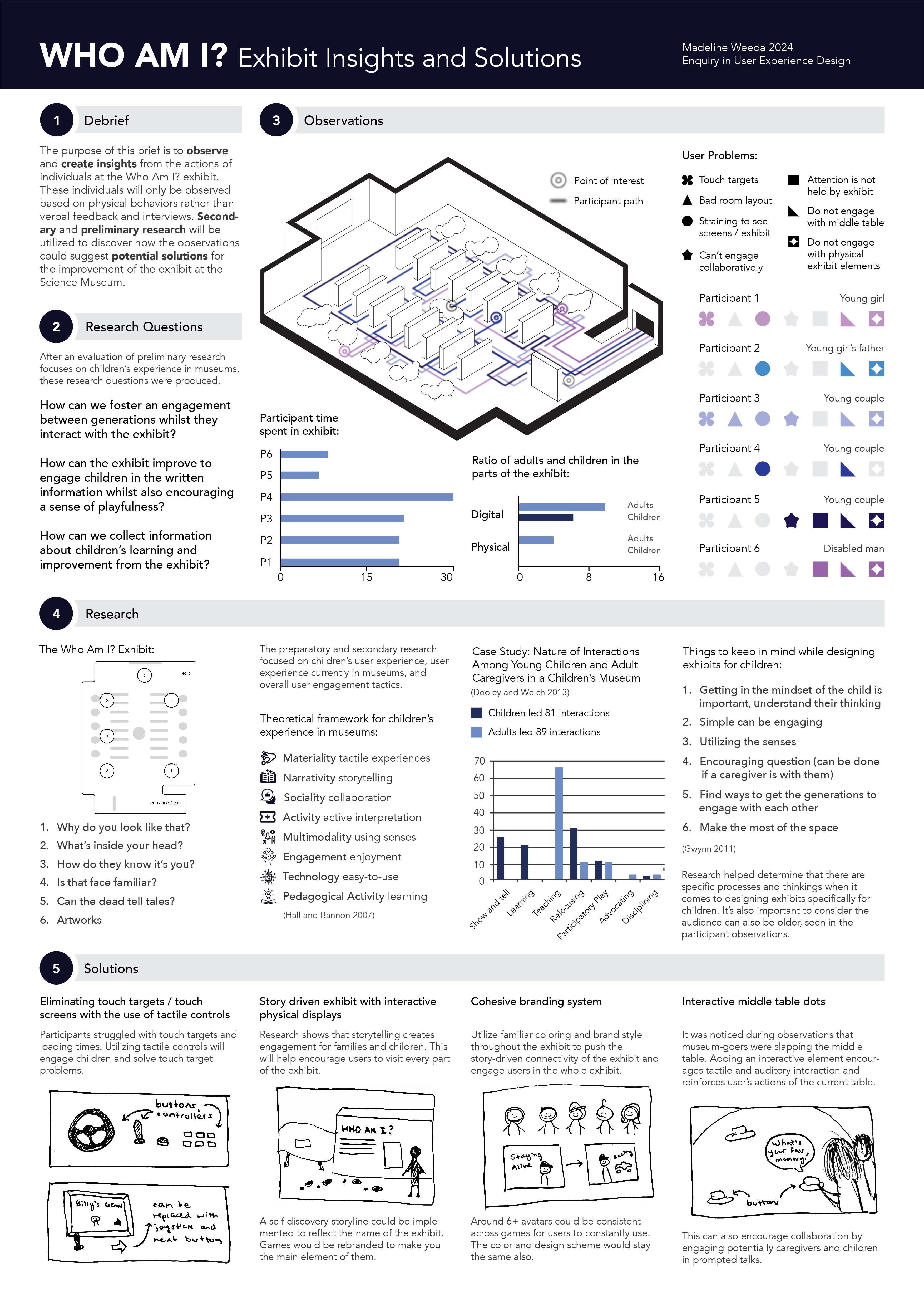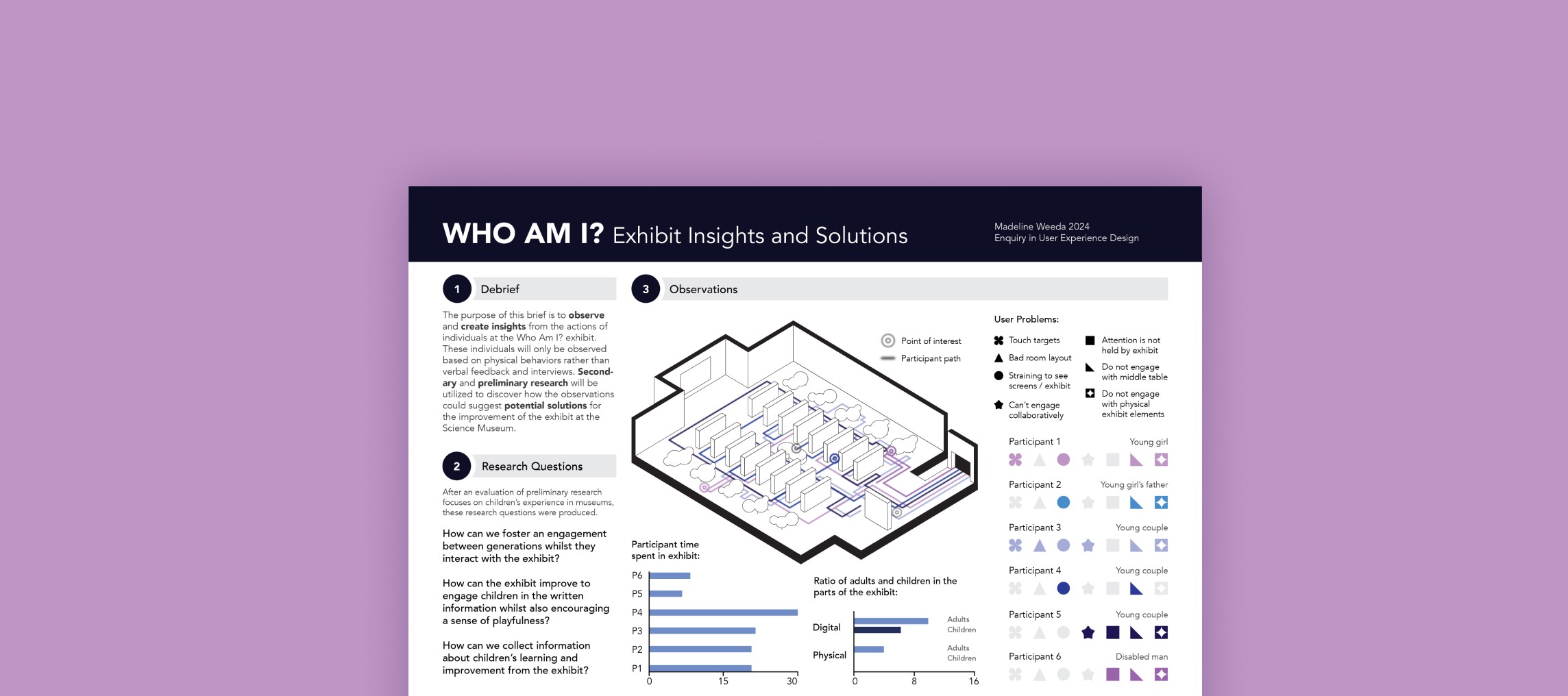 As new generations come to the London Science Museum, the 'Who am I?' exhibit struggles with keeping the attention of their intended user base. How can field research and preparatory, and secondary research suggest potential solutions to improve the exhibit and engage younger children in its message and content?